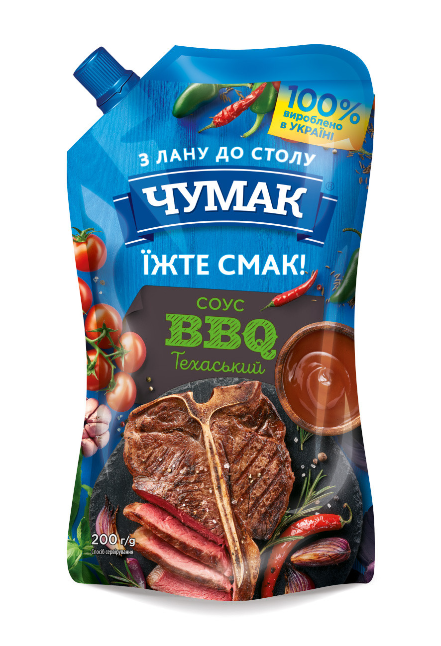 BBQ omáčka „Texaská“ od značky Čumak — je výrazná rajčatová omáčka s intenzivním kouřovým aroma a typickou sladko-kořeněnou chutí ve stylu texaského barbecue. Spojuje v sobě tóny zralých rajčat, koření a jemnou kouřovou pikantnost, která dodává pokrmům výrazný a plný charakter.