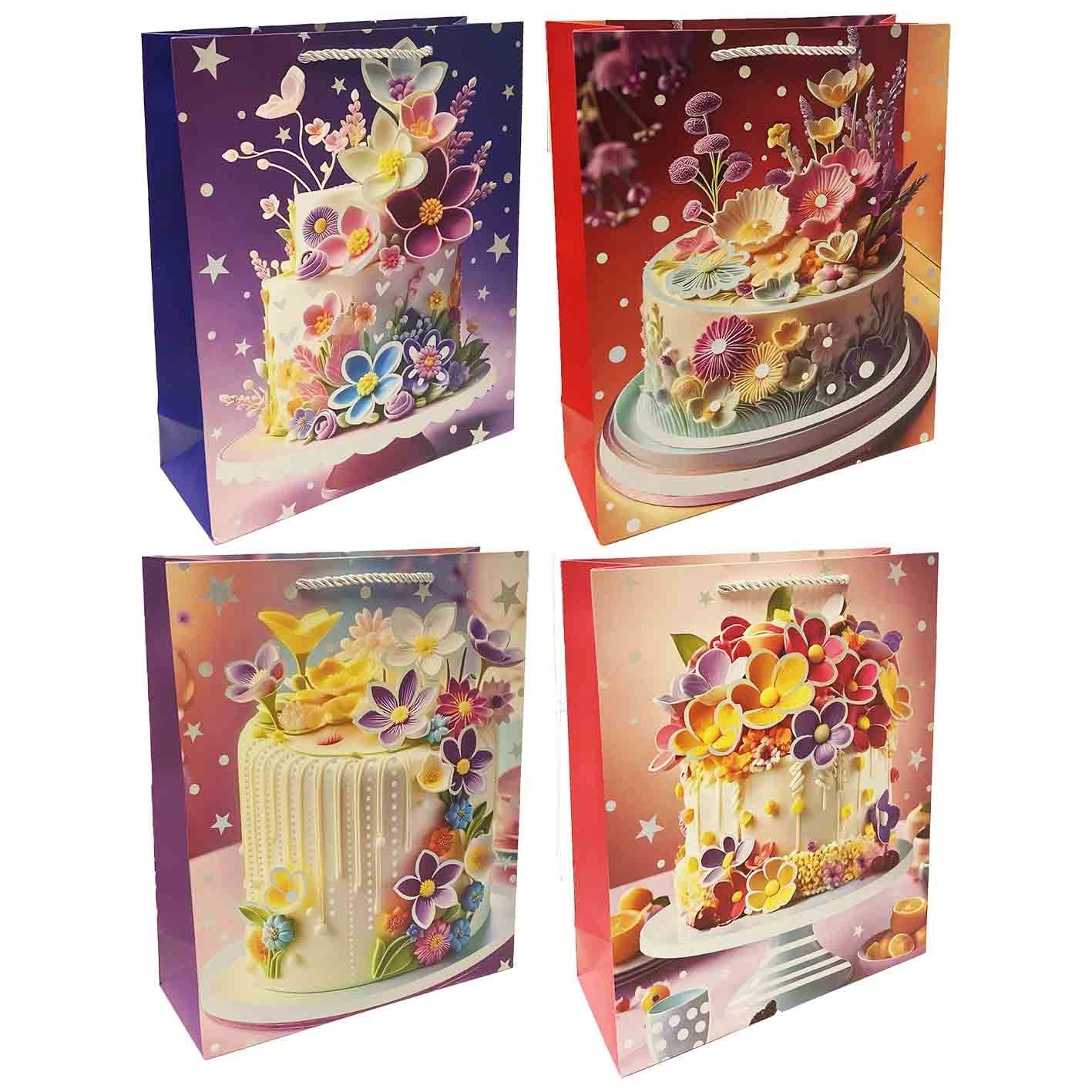 Dárková taška o velikosti 23×18 cm, vyrobená z pevného a odolného materiálu, určená k balení menších dárků a suvenýrů. Ozdobena jasným a slavnostním potiskem s motivem dortů, což z ní činí ideální volbu pro narozeniny, výročí a další slavnostní příležitosti.