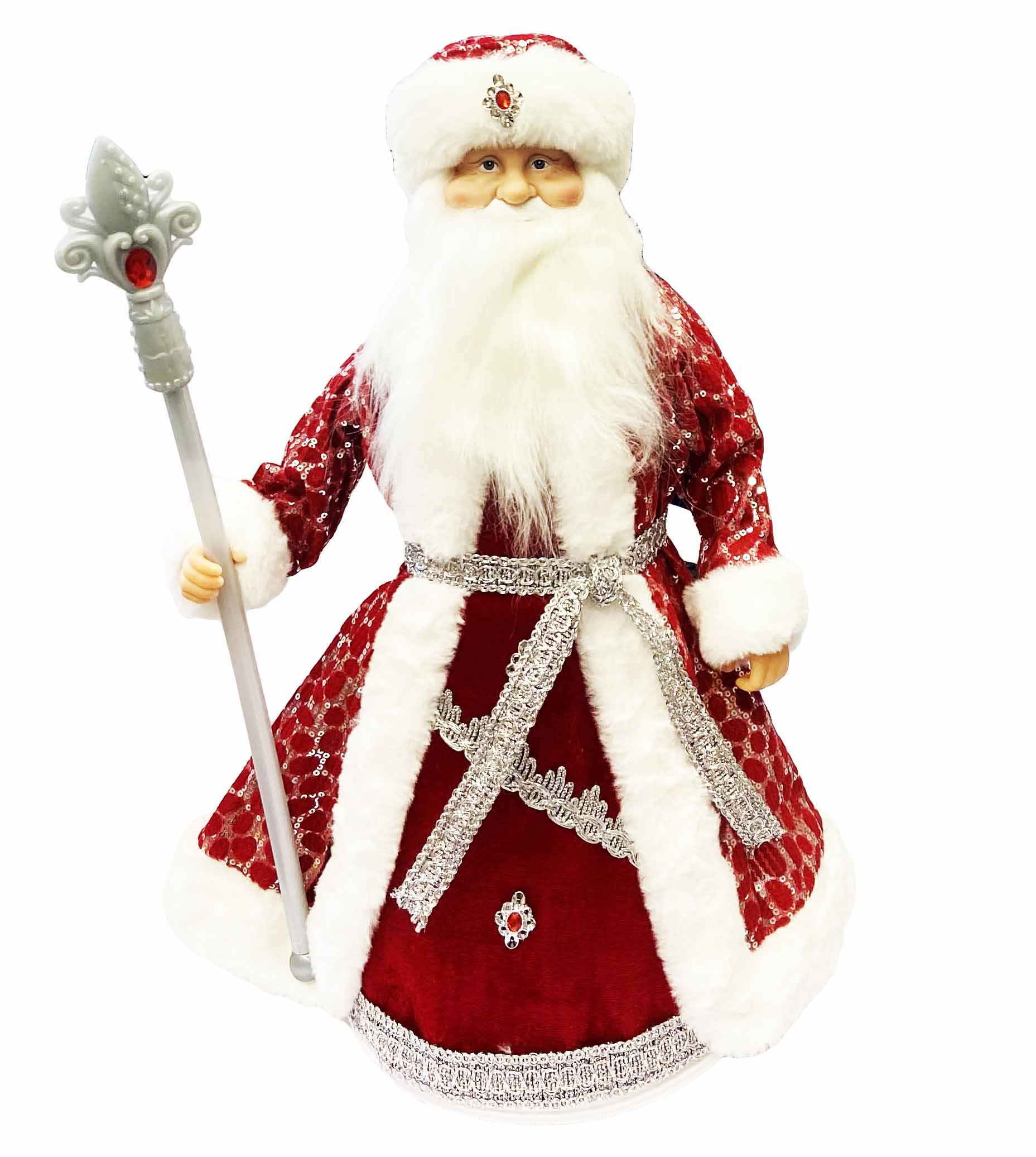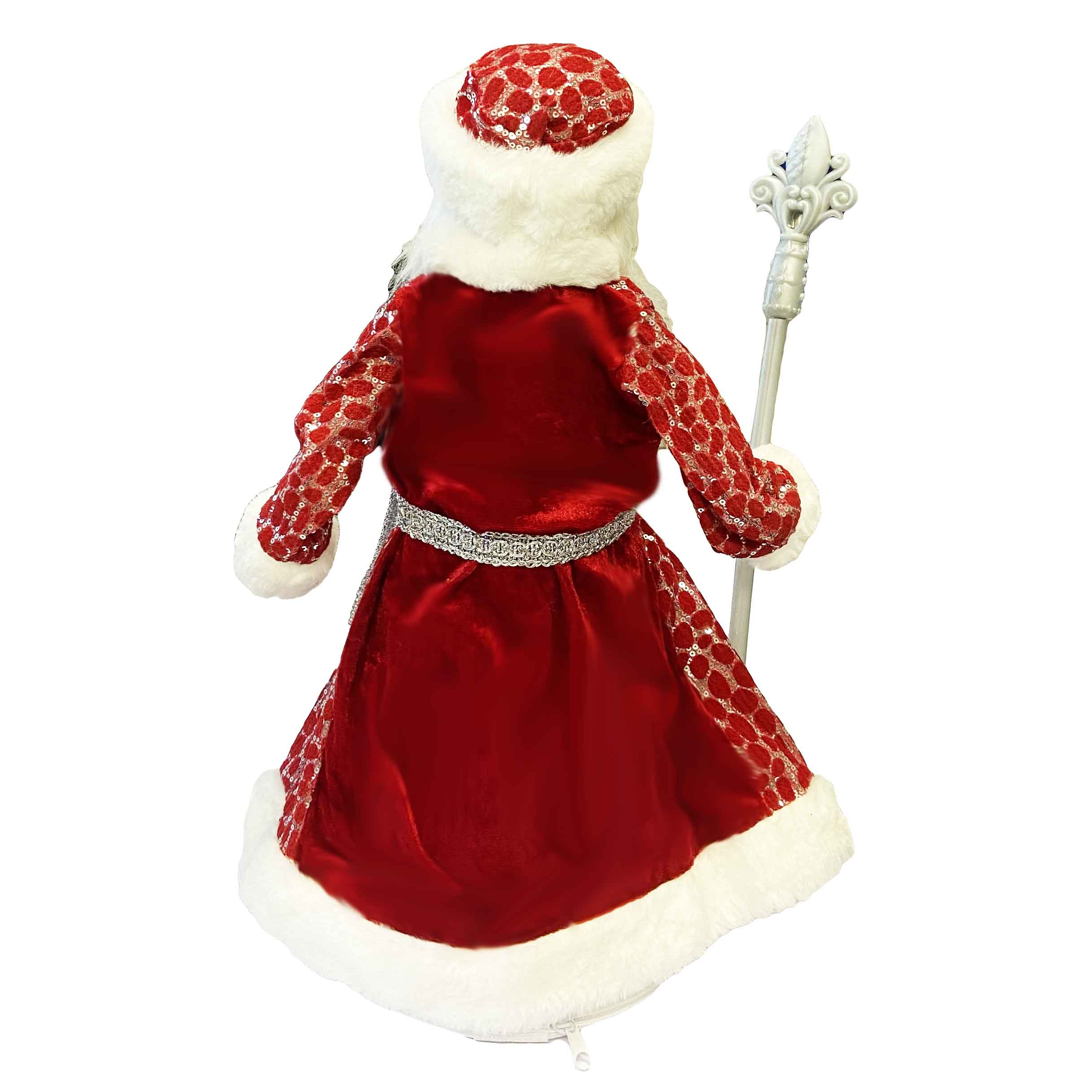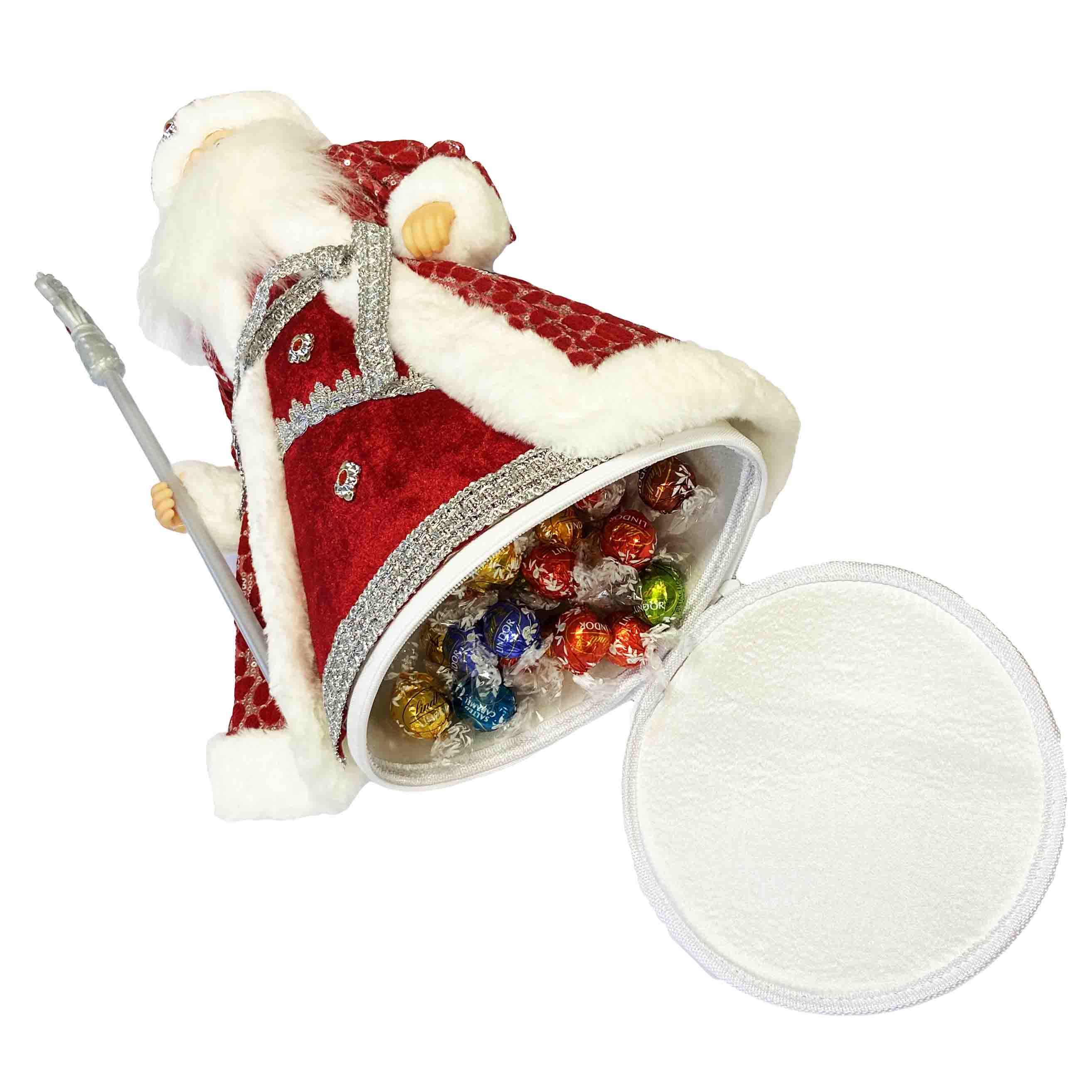 Figurka Děda Mráze v červeno-bílé se stříbrem, s oddělením na cukrovinky a dárky, 50 cm