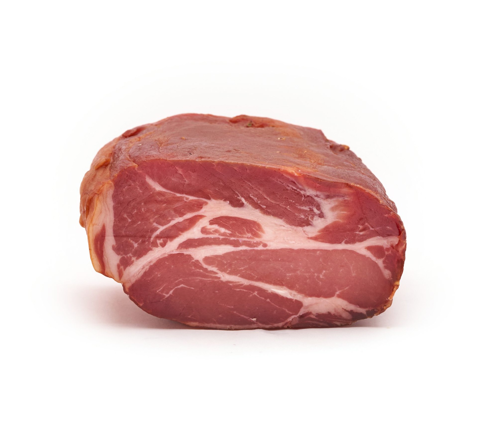 Královský vepřový krk je vysoce kvalitní masný delikatesní výrobek, připravený z vybraného vepřového krku metodou studeného uzení. Produkt se vyznačuje jemnou, ale pružnou texturou, vyváženou chutí a typickou vůní uzení.