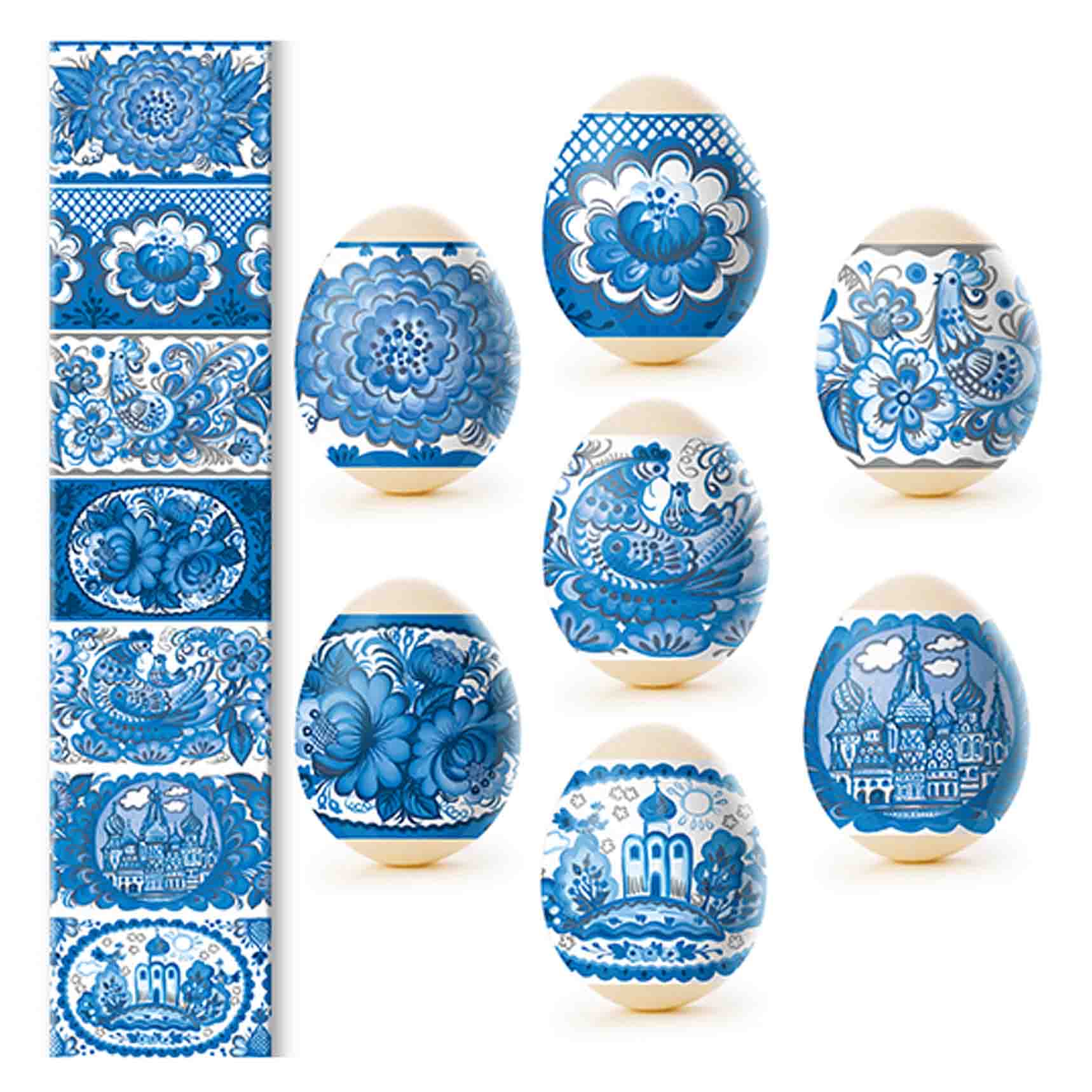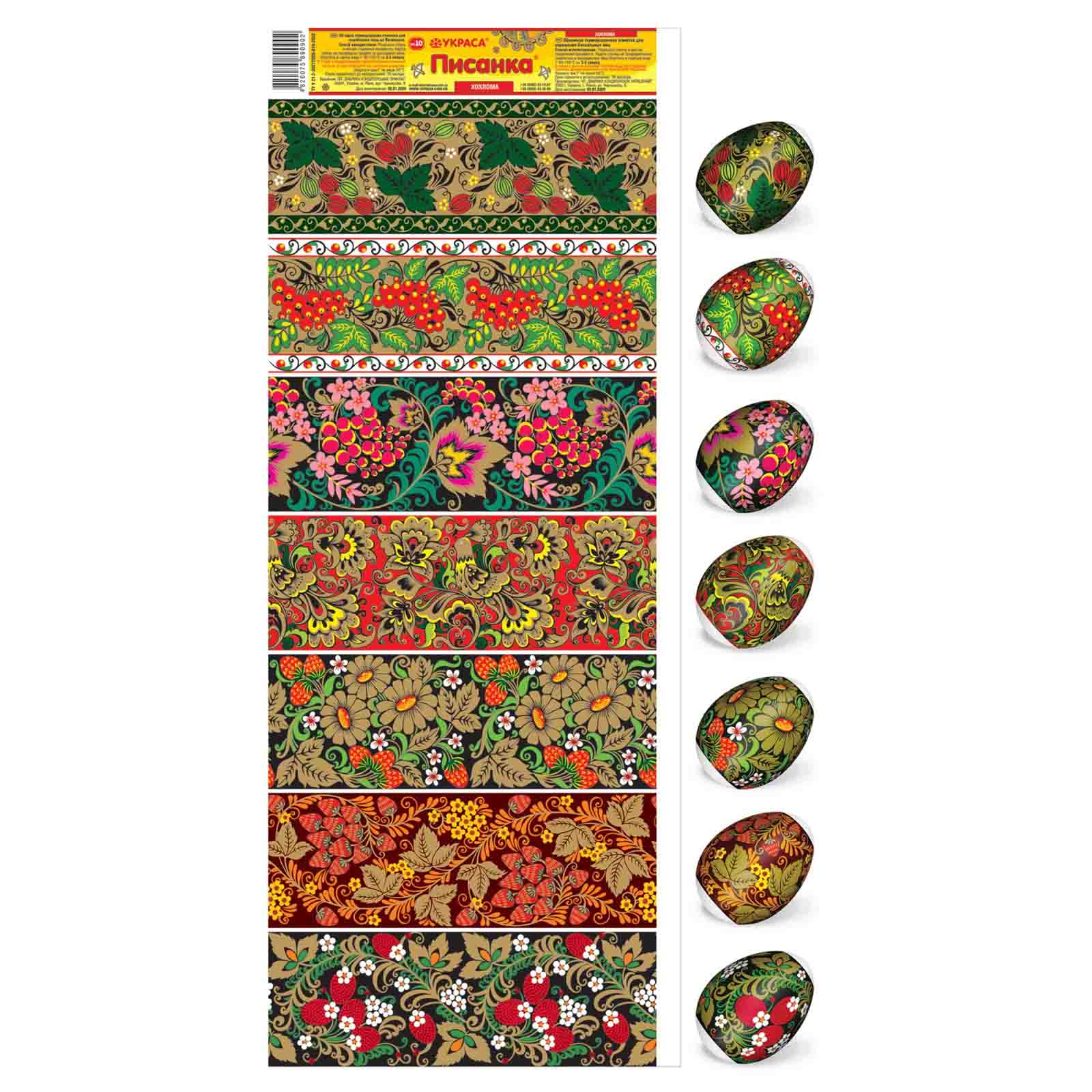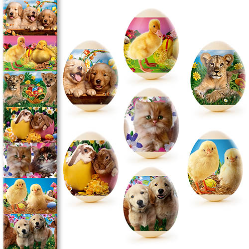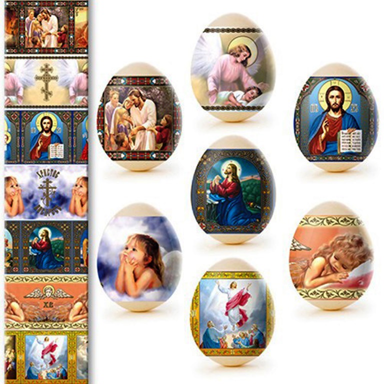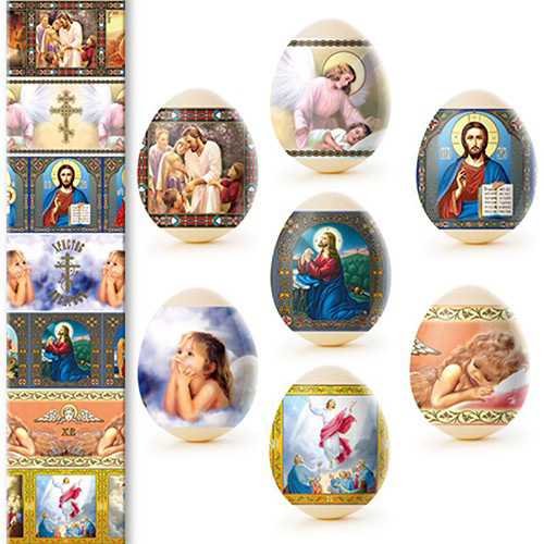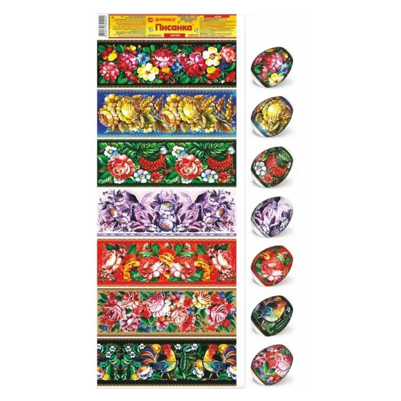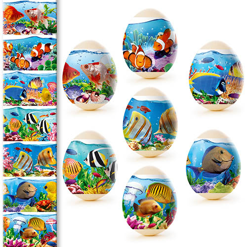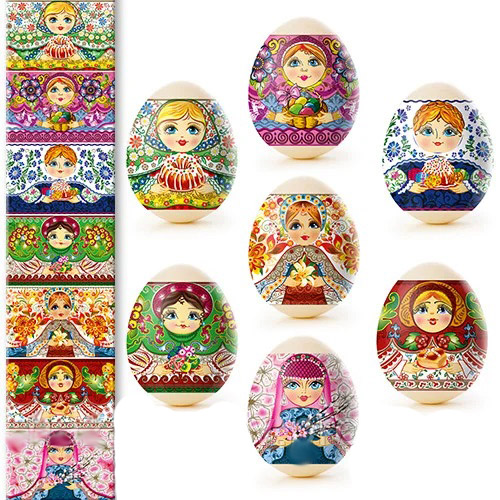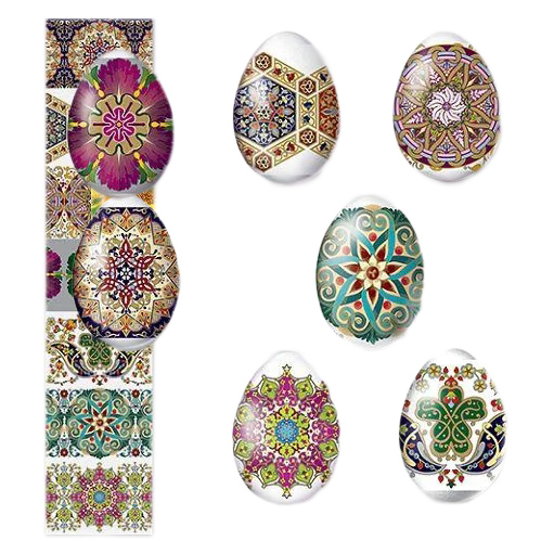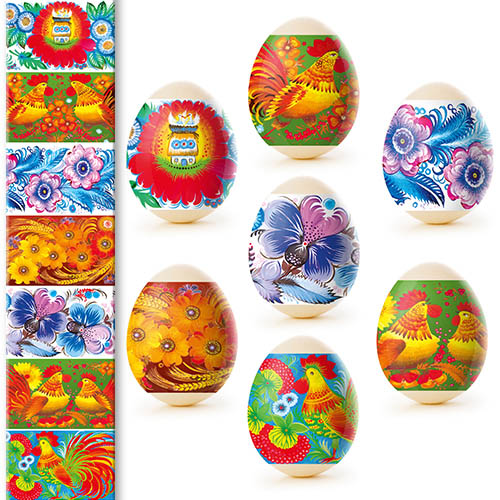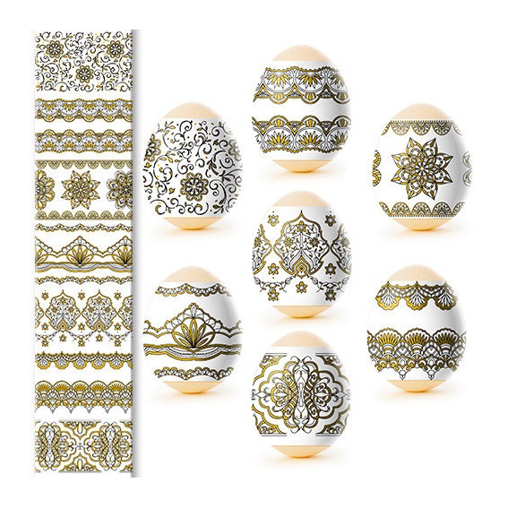 Termálny nálepkový set na ozdobenie veľkonočných vajec je vyrobený z fólie, ktorá je zdobená rôznymi obrázkami a má vlastnosť zmenšiť sa pri vysokých teplotách (v tomto prípade horúca voda) a tesne priliehať k vajíčku. Ozdobenie vajec pomocou termálnych nálepiek s veľkonočnou symbolikou je rýchle, jednoduché, lacné a veľmi krásne.