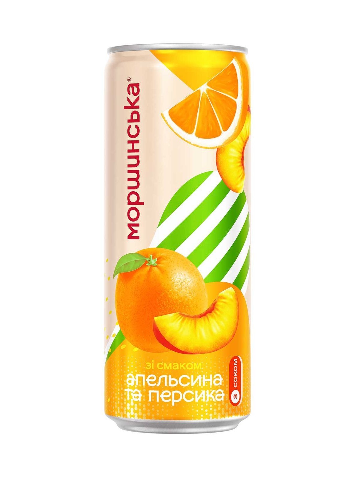 Složení: přírodní minerální voda „Morshynska“ (cca 82 %), glukózo-fruktózový sirup, rekonstituované šťávy z pomeranče a broskve z koncentrátu (celkem cca 5–10 %), kyselina citronová (regulátor kyselosti), přírodní aromata pomeranče a broskve.