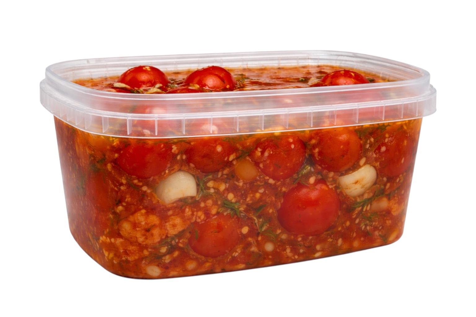 Složení: rajčata, cukr, sůl, petržel, ocet, rafinovaný řepkový olej, česnek, bílá cibule, kopr.