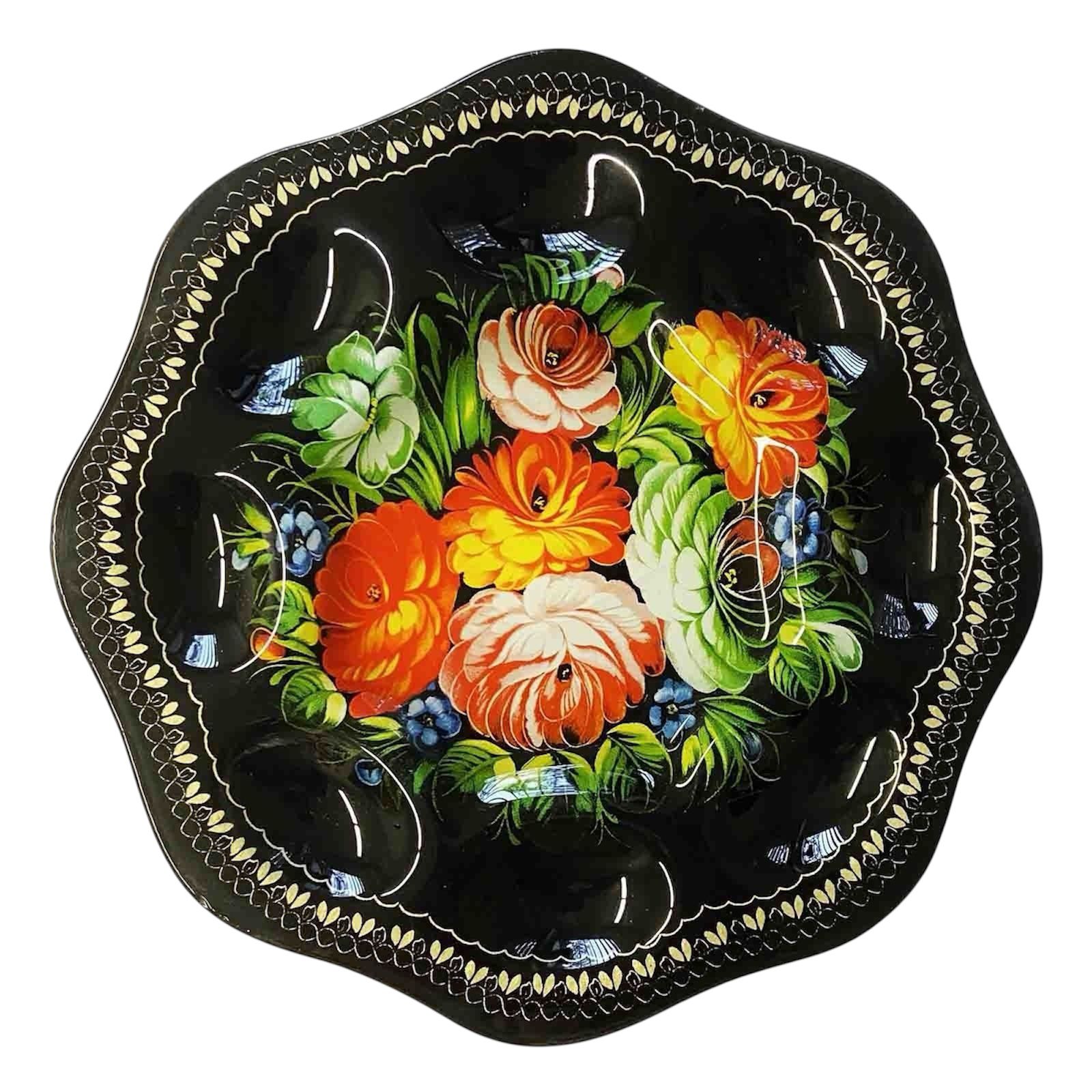 Elegantní skleněný talíř černé barvy, určený pro 8 velikonočních vajec. Vyznačuje se pevnou konstrukcí a precizním zpracováním, díky čemuž umožňuje bezpečně umístit vejce a krásně ozdobit sváteční stůl.