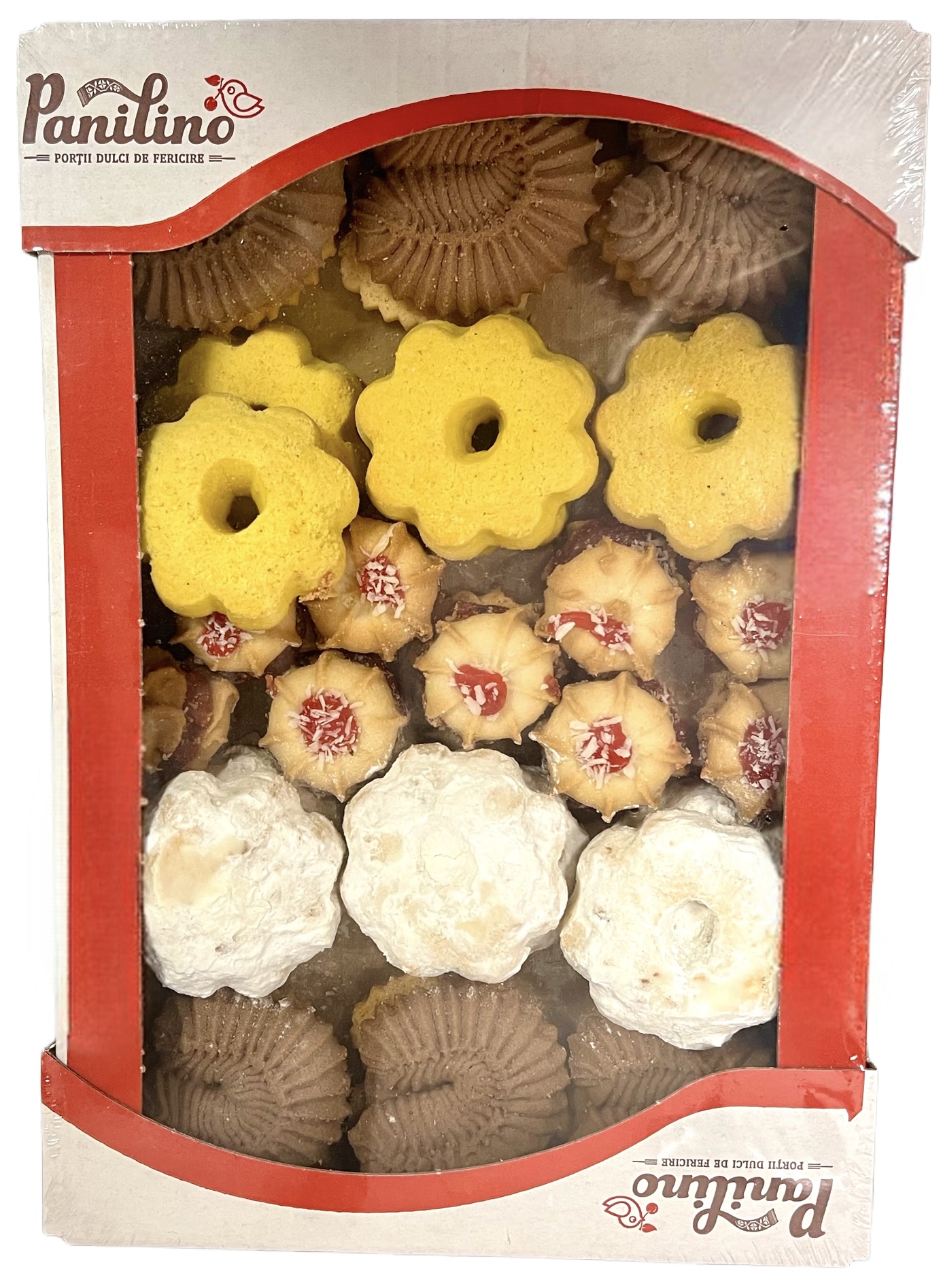 Zloženie: pšeničná múka, termoštabilná jablková náplň s broskyňovou príchuťou (kryštálový cukor, jablkové pyré, melasa, voda, potravinárske prísady: zahusťovadlo: pektín, sodný alginát, antioxidanty: kyselina citrónová, vápenatý síran, glycerín, prírodný potravinársky farbivo: karotény), konzervant (cukor, voda, glukózový sirup, želírujúca látka (pektín), koncentrát z čiernej mrkvy a šafránu, regulátor kyslosti (kyselina citrónová), zahusťovadlo (xantánová guma, karobová guma), aróma, konzervant (draselný sorbát), kokosové lupienky, vanilkové aróma, 80% rastlinného tuku (oleje a rastlinné tuky: palmový olej, repkový olej), kukuričná múka, cukor, koncentrovaný preliev s jahodovou príchuťou (cukor, voda, melasa, želírujúca látka (pektín), koncentrát z čiernej mrkvy a šafránu, regulátor kyslosti (kyselina citrónová), zahusťovadlo (xantánová guma, karobová guma), aróma, konzervant (draselný sorbát), práškový cukor, arašídy, kvások (pyrofosforečnan sodný, hydrogenuhličitan sodný), odtučnený kakaový prášok, kokosové lupienky, vanilkové aróma, vlašské orechy.