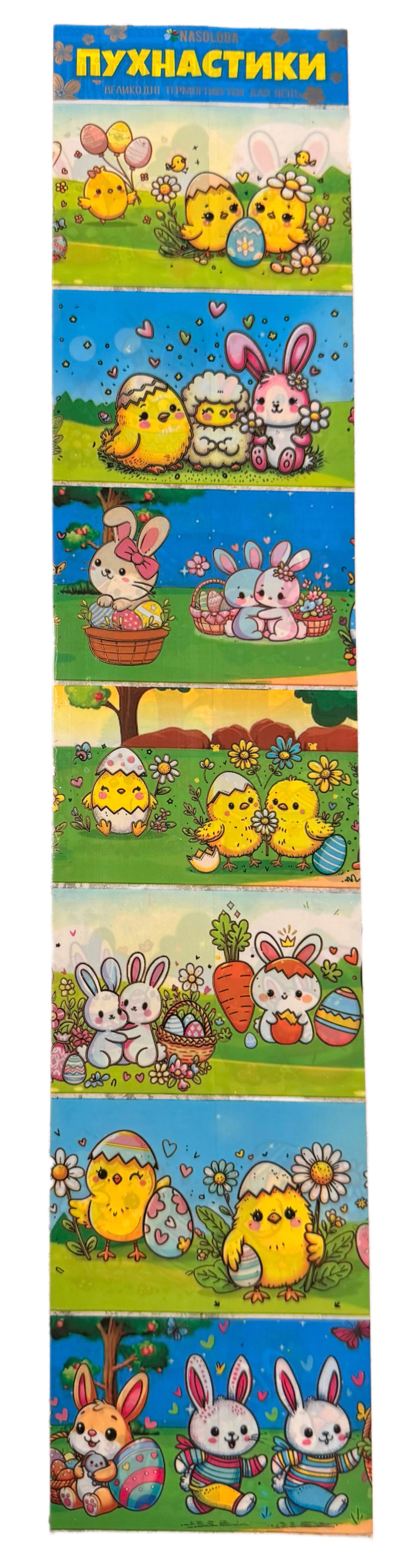 Velikonoční termoetikety „Roztomilí chlupáčci“ jsou pohodlným a jednoduchým způsobem, jak krásně ozdobit vejce k svátkům. Jasné a zábavné motivy malých chlupatých zvířátek vytvářejí veselou a slavnostní atmosféru, díky čemuž je velikonoční stůl obzvlášť atraktivní pro děti. Etikety se snadno aplikují: působením horké vody se fólie pevně přizpůsobí tvaru vejce a zajistí úhledný a estetický výsledek. Ideální pro vytvoření radostné a slavnostní atmosféry.